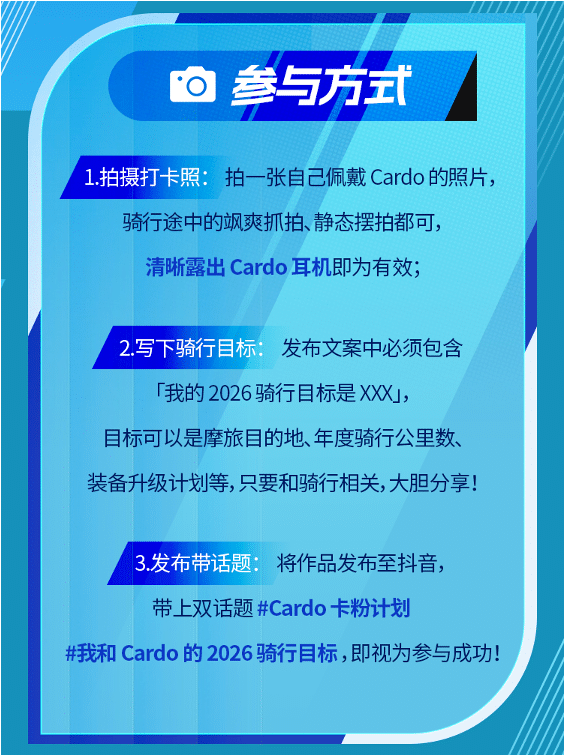 卡粉计划重磅升级!2026首期开启:戴上Cardo,赢取年度全勤大奖!