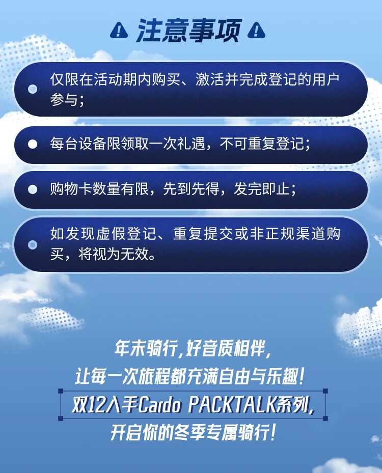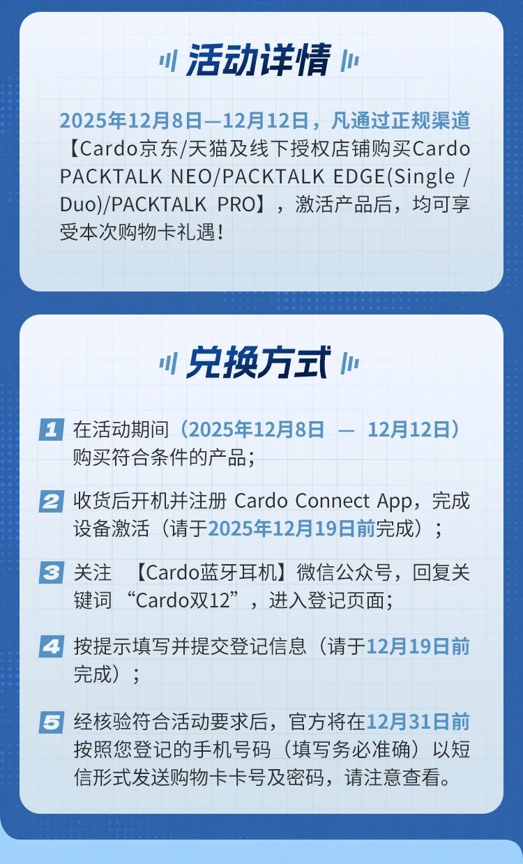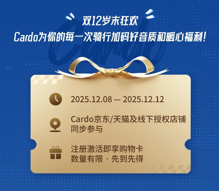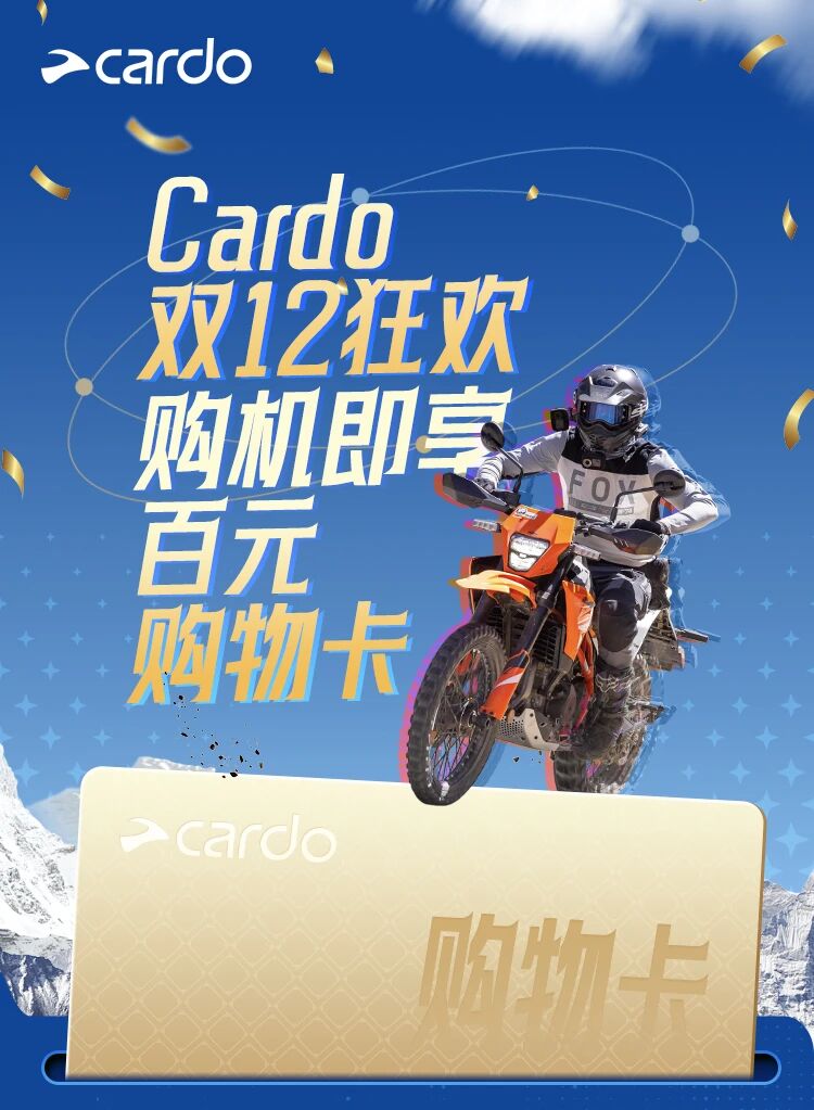 摩托车头盔耳机Cardo双12岁末狂欢|购机即得购物卡